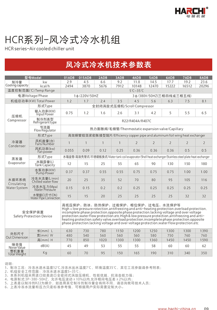 應用環(huán)境: 主要為模具、光纖光纜水槽、工業(yè)爐、制藥機械、點焊機等行業(yè)提供循環(huán)冷卻水,能夠有效地控制和調節(jié)冷卻水溫度(3℃~35℃),讓機械設備產(chǎn)生熱量的部分在運轉過程中能夠保持所需要的恒定溫度冷卻設備產(chǎn)生的高溫。從而大大提高機械設備的使用壽命和工作效率! 一、風冷型冷水循環(huán)機也叫風冷式冷水機組,主要區(qū)別就是冷水循環(huán)機不帶水箱(水箱外置),通過板式換熱器或者殼管式換熱器來給水箱內的水循環(huán)降溫。 產(chǎn)品特點Features: 1、采用國際最先進的渦旋式或活塞式壓縮機,電器及制冷系統(tǒng)原器件全部為世界著名品牌; 2、冷卻水泵及管路系統(tǒng)全部采用不銹鋼材質,確保水質更潔凈,使用壽命更長久、制冷效果更穩(wěn)定; 3、風冷冷凝器全部采用進口風機及大風量低噪音軸流設計,噪音更低、換熱效率更高; 4、風冷系列無需配置冷卻水塔及冷卻水泵,安裝簡單,移動方便,適合生產(chǎn)場地比較緊缺的環(huán)境使用; 5、機組采用進口高精度電子顯示器,內置P.I.D 自動演算功能,啟動延時功能,控溫精度在±0.5℃范圍內,且控制溫度范圍在3℃~40℃之間; 6、為保證使用安全,機組內置漏電保護器、相位保護、過載保護、電流保護;系統(tǒng)安裝了高、低壓保護傳感器,為防止缺水或循環(huán)水系統(tǒng)內部結冰,機組安裝了流量開關和低液位保護裝置。